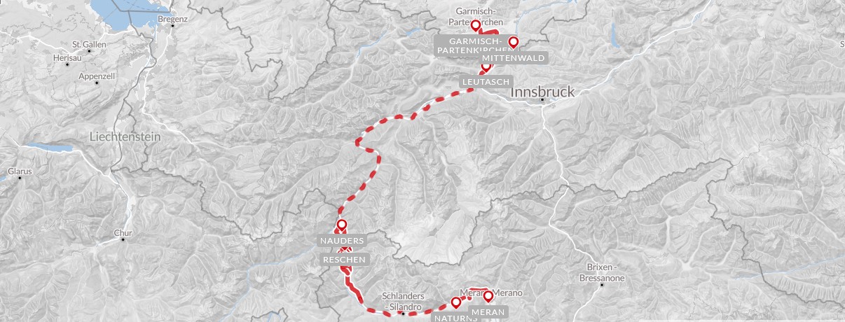 Starte dein Alpenabenteuer quer durch Bayern, Tirol und Südtirol. Es erwarten dich urige Almen, versteckte Berghütten, wilde Schluchten und atemberaubende Hochtäler – perfekt, um auf alten, geschichtsträchtigen Wegen die Bergwelt zu erkunden. Zwischendurch laden gemütliche bayerische Biergärten, deftige Tiroler Köstlichkeiten und Südtiroler Spezialitäten dazu ein, die Beine hochzulegen und neue Energie zu tanken. Umgeben von den höchsten Gipfeln der Alpen wanderst du bis ins sonnenverwöhnte Meran, wo alle Eindrücke dieser einmaligen Tour zu einem unvergesslichen Erlebnis verschmelzen. Die perfekte Gelegenheit, die schönsten Seiten der Alpen hautnah zu erleben!